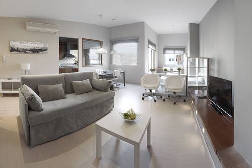 Beds feature down comforters. The centre of Barcelona is within 3 km of the aparthotel and Basilica of the Sagrada Familia is about 2. Accommodations offer separate living rooms.